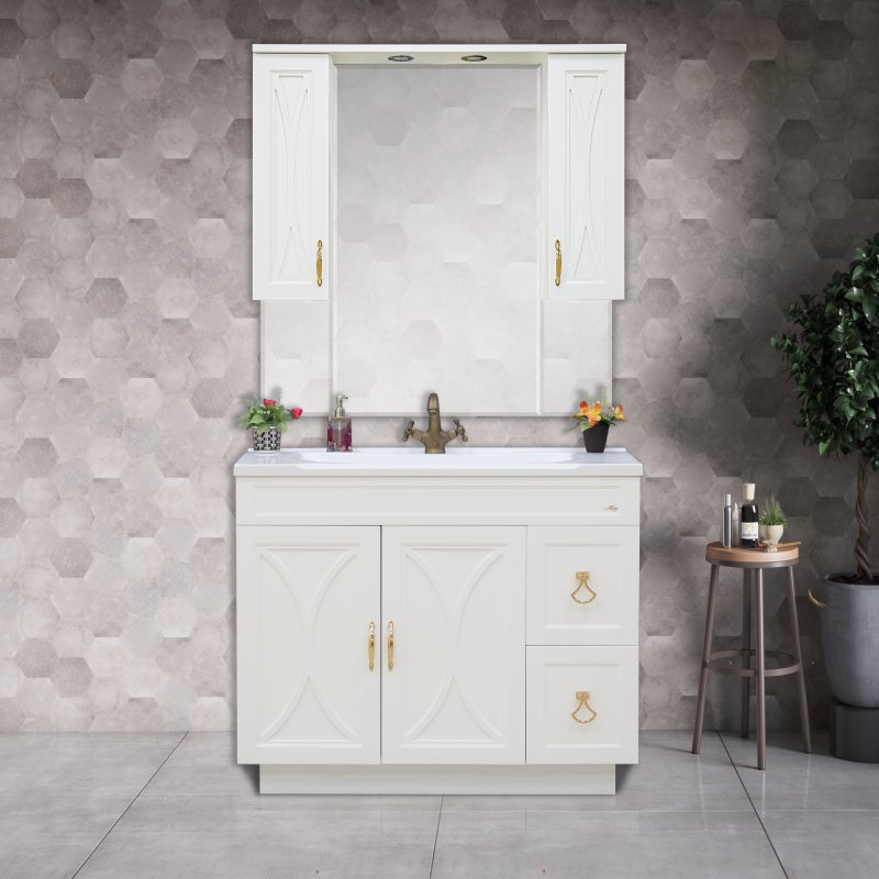 Тумба с раковиной Misty Амбра 100 с 2 ящ. белая