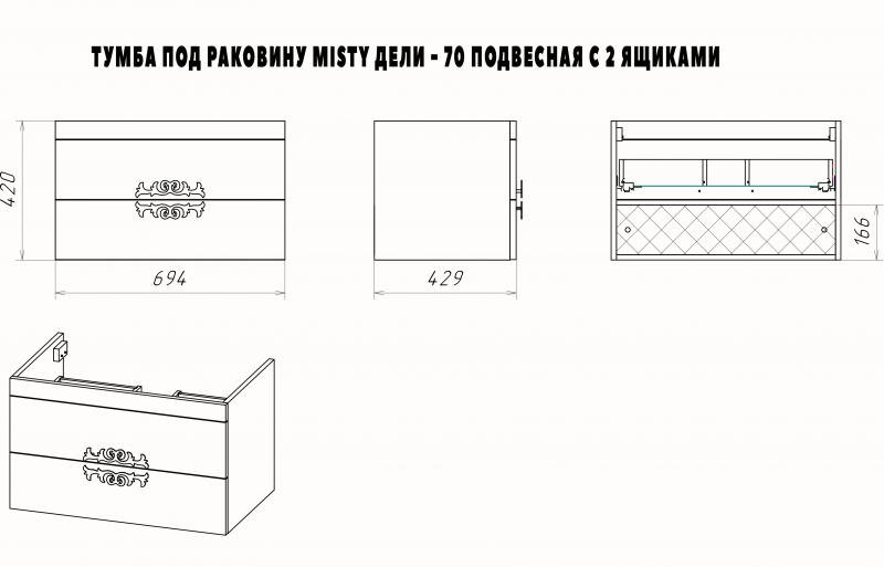 Тумба с раковиной Misty Дели 70 белая подвесная 2 ящ.