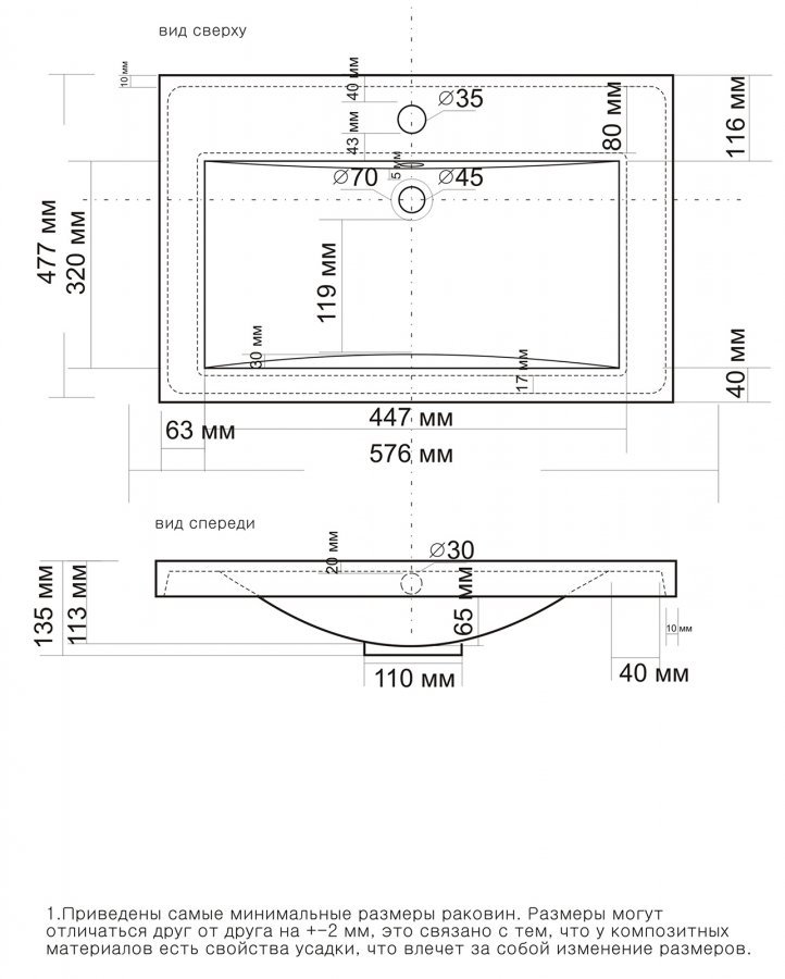 - Раковина Алиса - 58 (ш/в/г): 576x135x477 мм
