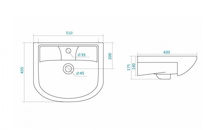 - Раковина Santek "Ладога"- 50 (ш/в/г): 510x175x435 мм