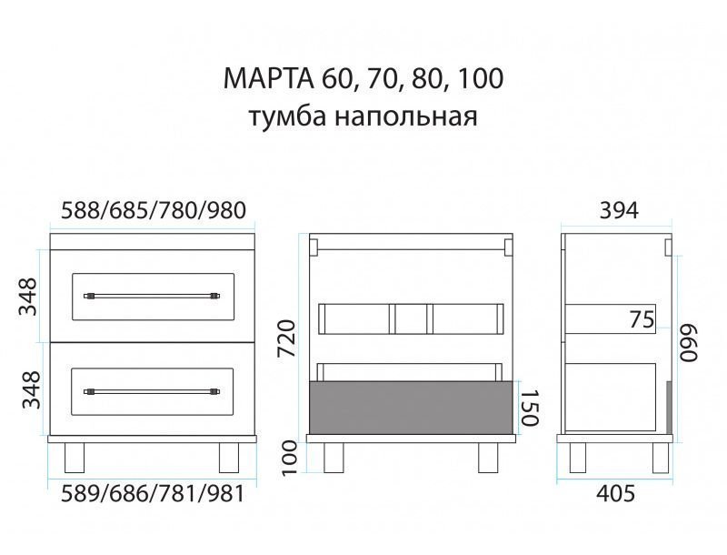 - Тумба напольная (ш/г/в): 685х395х720 мм