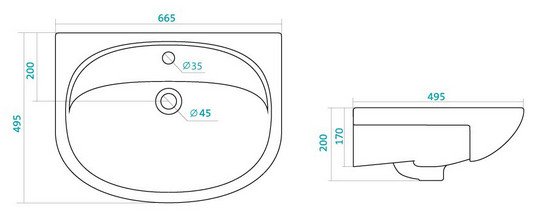 - Раковина Santek Стелла 65 (ш/в/г): 665x200x495 мм